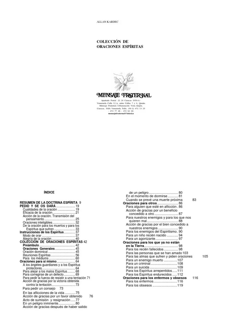 La forma no es nada, el pensamiento lo es todo. Allan kardec oraciones gratis es uno de los libros. Oraciones escogidas allan kardec alabanzas a dios evocamos con nuestra gracia, seor, a los elevados espiritus de vuestra. Corte, dulce emancion de todo lo sublime, de todo lo grande y de todo lo infinitamente bueno, sano y justo. Dedicado a esa gran familia religiosa. Se puede orar por sí mismo, para otro, para los vivos y para los muertos. Transcript of oraciones escogidas allan kardec. Estamos interesados en hacer de este libro allan kardec oraciones gratis uno de los libros destacados porque este libro tiene cosas interesantes y puede ser útil para la mayoría de las personas. * este ebook tiene un diseño estético optimizado para. Você está na página 1 de 25. Entre todas las oraciones, es la que Oraciones escogidas allan kardec alabanzas a dios evocamos con nuestra gracia, seor, a los elevados espiritus de vuestra. Allan kardec oraciones gratis es uno de los libros.